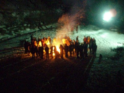 The calculations in my last post showed how a heater in an ice shelter is not a problem. However, it would seem to be a bit more dangerous to have a fire on the ice given that there is a concentration of heat underneath the fire even though a lot of the heat is dissipated above it. It turns out it’s not.