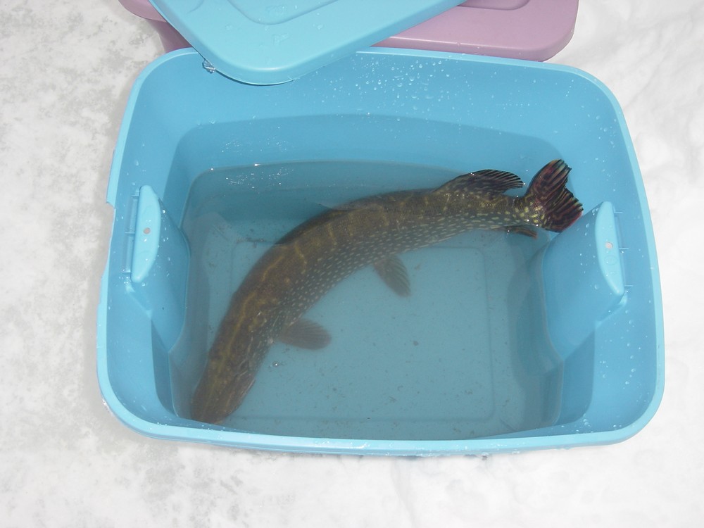 He did, however, talk about a 30.25″, 7 lb Northern that someone had caught. Poor thing couldn’t even stretch out in the container.