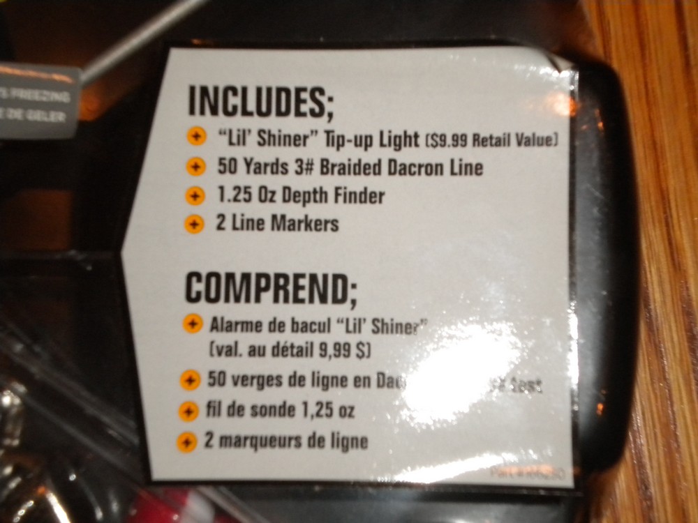 All in all, I do like the tip-up a lot. It has some extra features that make it a good buy. I saw it at my local sporting goods store for $29.99, which is a bit hefty for a tip-up, in my opinion, even with the extra features. But even plank style tip-ups run upwards of $25 these days. And with the Lil’ Shiner light costing $12.99 on its own, if you fish at night and do some shopping around, it will be a good value.