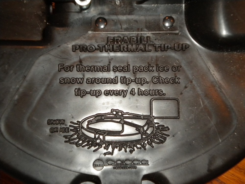 The underside of the tip-up is covered with styrofoam to insulate your ice hole to prevent it from freezing. Personally, I don’t put much credence into this because when it’s cold out, water is going to freeze. The instructions molded into the super secret storage compartment cover says you should pack snow around the sides of it to help insulate the hole, but that seems to me to be a lot of work to give you an extra couple of minutes at most. Besides, it’s all going to get ruined when you pull the thing up for that big lunker that took your bait, then got off the hook. Then you have to pack it all together again.