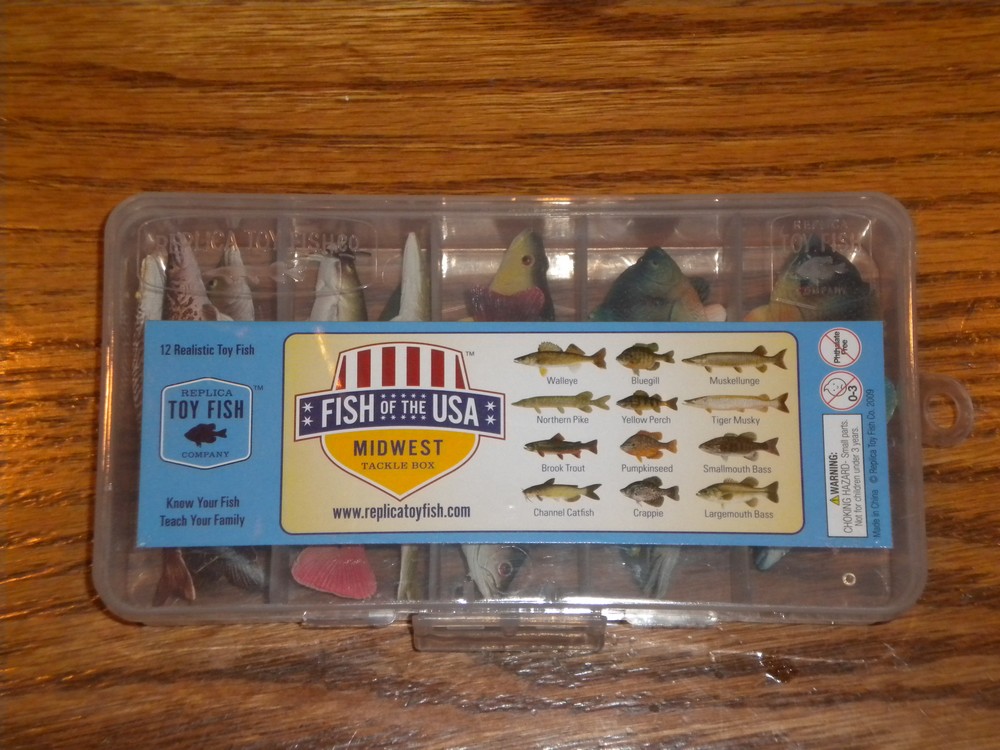 Simeon sent me a sample of his fish for me to evaluate. They came in a plastic “tackle box” with 12 fish that can be commonly found in the Midwest. It was the “Fish of the USA Midwest” set.