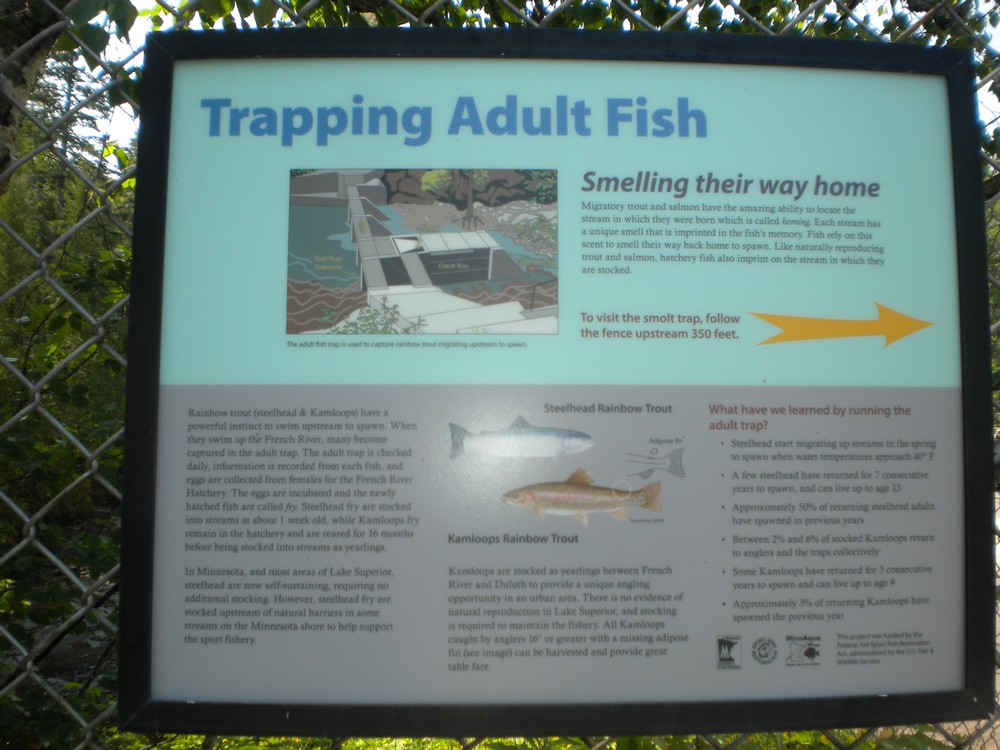 The French River hatchery sits next to the MN DNR Area Headquarters and raises Rainbow Trout for release into regional lakes and streams. They trap Rainbows going up stream to spawn and harvest the eggs from females. They raise the fish for 16 months, then release them.