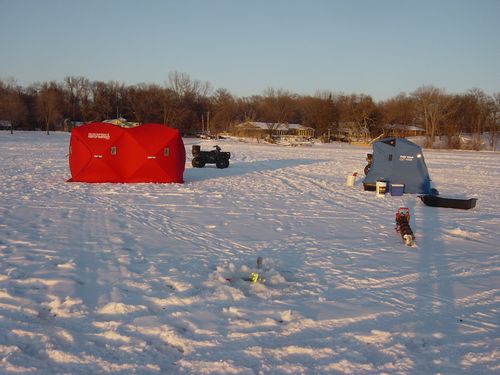 So I got started on my 2010 goals early. I got a call from Mark yesterday afternoon. He, Rob, and Steve were headed out fishing. I wasn’t able to join them right away, but found them on the ice at about 4:30.