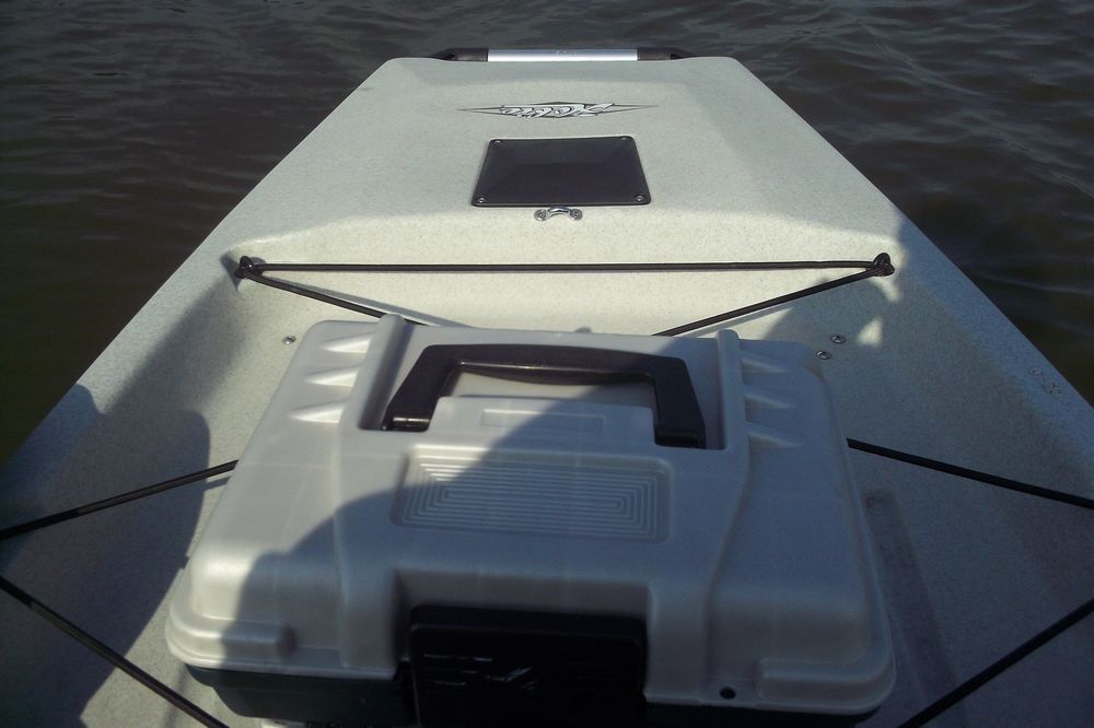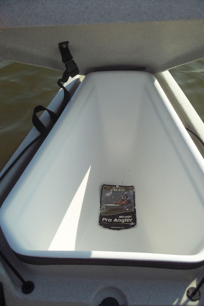 The Pro Angler has a large storage covered storage area in front and open one in back with bungee cord tie downs. One of the things I love about fishing in a boat is being able to use a livewell. Hobie has one you can attach to the back storage area.